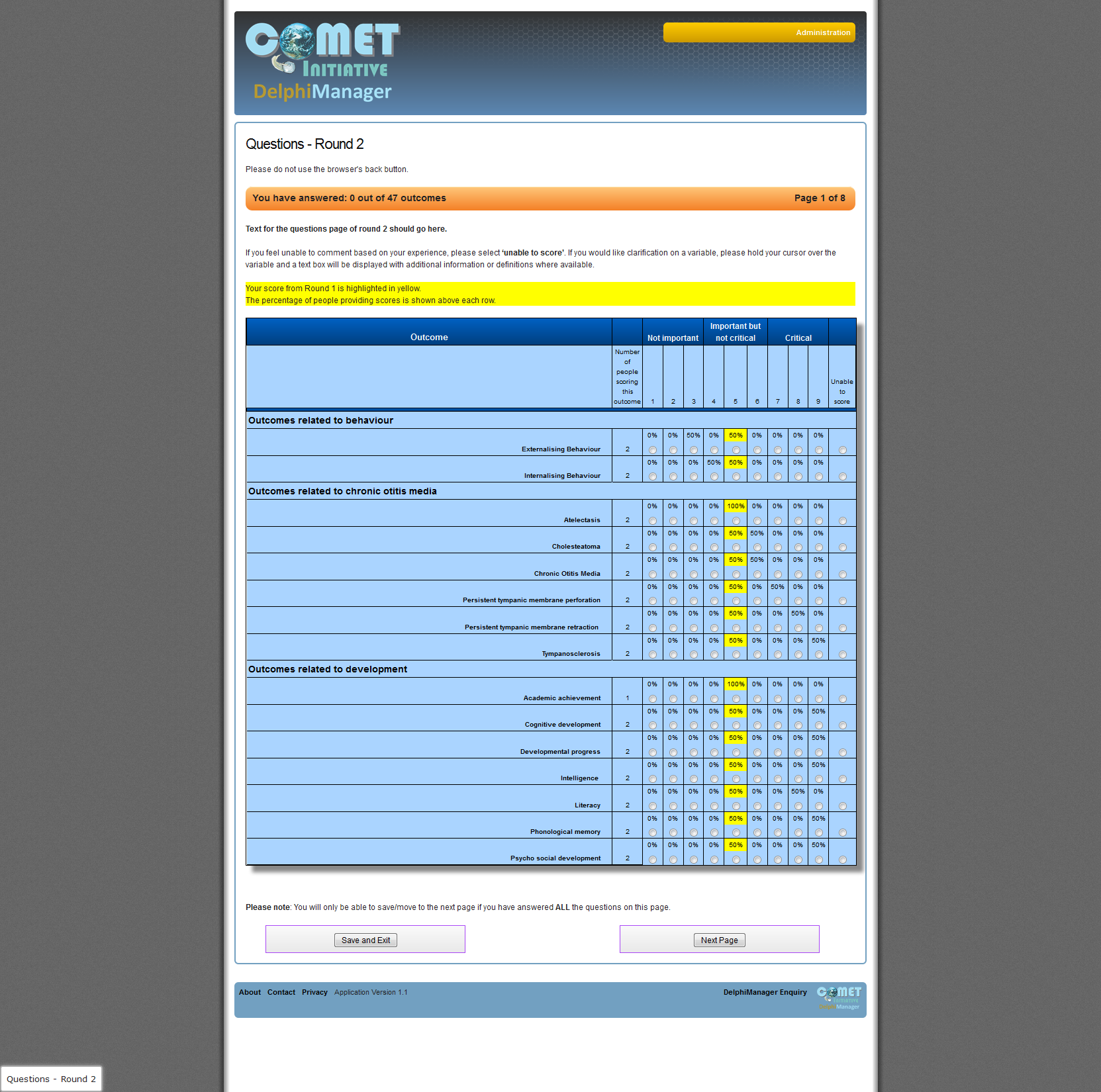 Round 2 graphs shows a different display type for round 2 where stakeholder panel results are displayed as graphs.